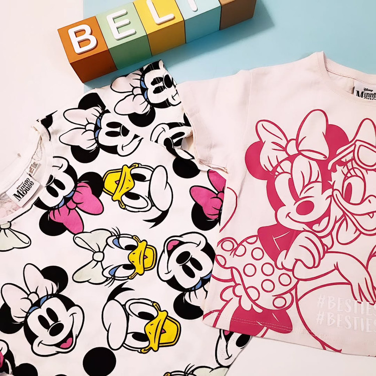 تیشرت دخترانه کراپ بسته دو تایی مدل مینی موس و اسکای