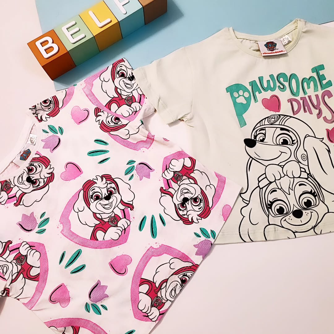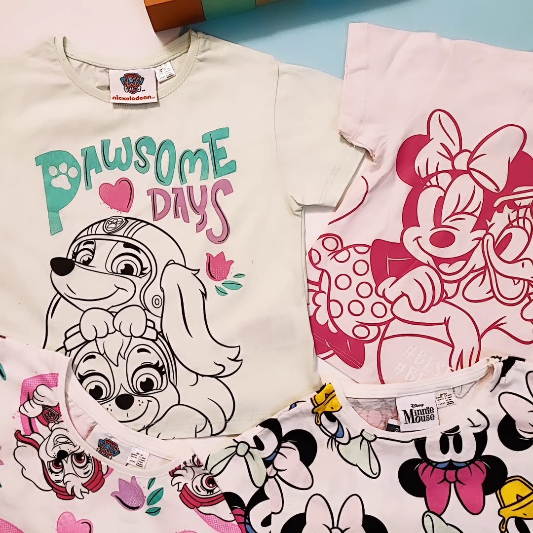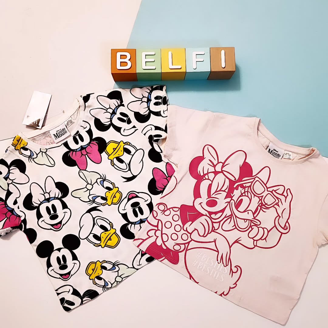 تیشرت دخترانه کراپ بسته دو تایی مدل مینی موس و اسکای