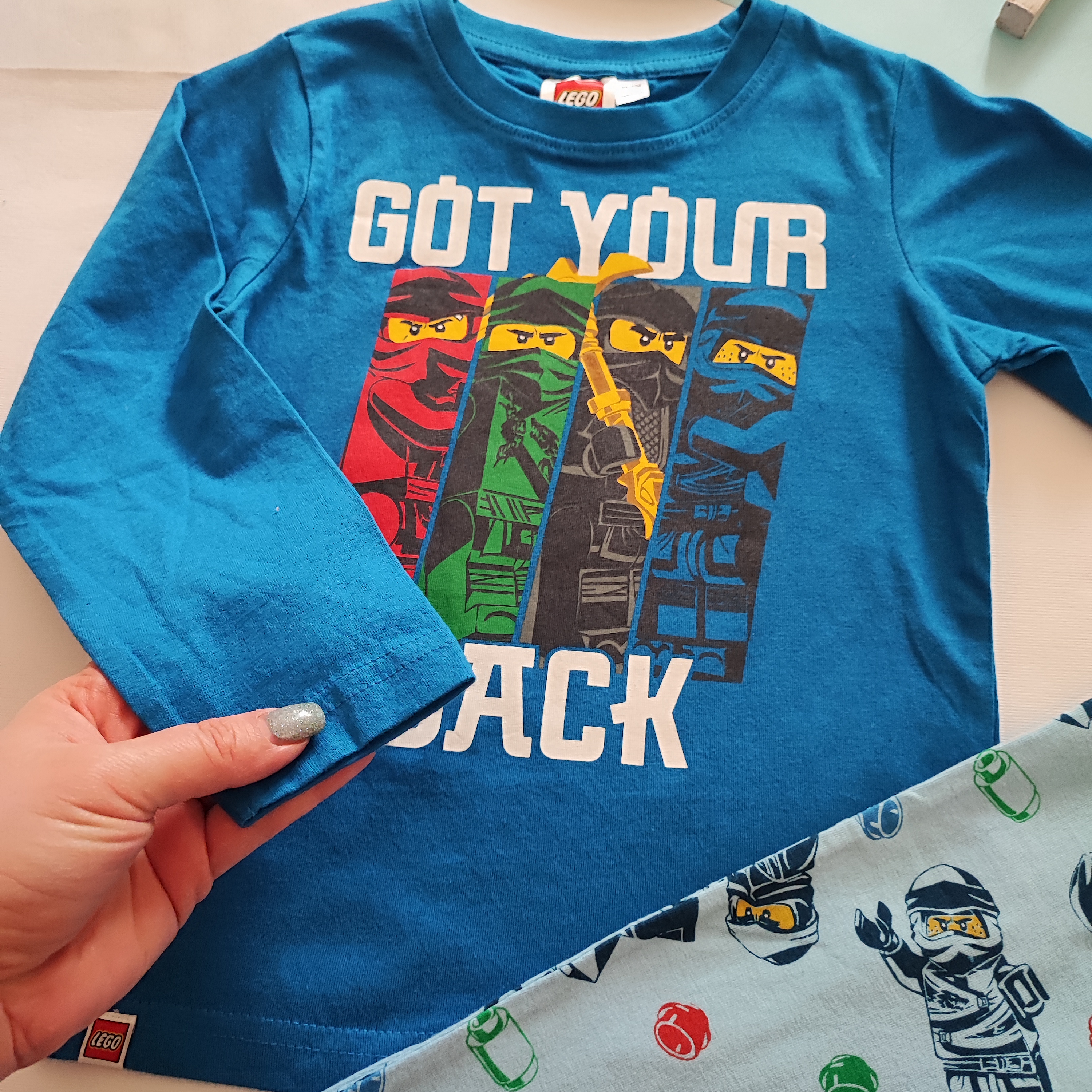 ست نخی طرح نینجا از سری لگو ، جنس صد در صد نخ ، بسیار لطیف و نرم ، دارای استاندارد اتحادیه اروپا سازگار با پوست حساس کودکان