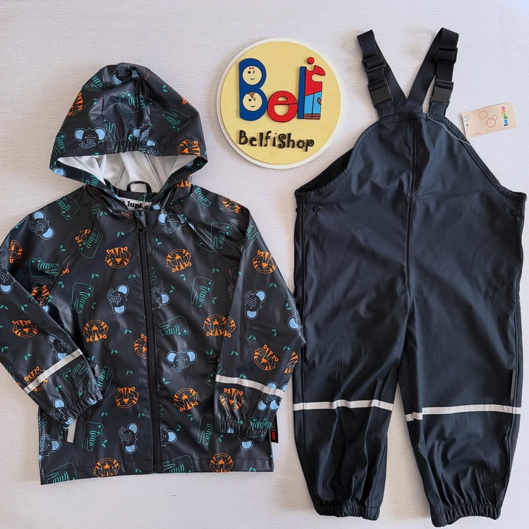 ست بارونی شلوار ضد آب بدون پلار یه کار عالی و کاربردی مناسب چهار فصل برای بچه ها. جنس رویه کاملا ضد آب و بادگیر کلاهدار، دارای نوارهای شبنما و زیپ با محافظ چانه.