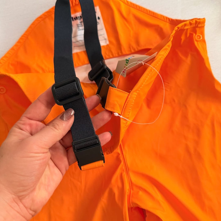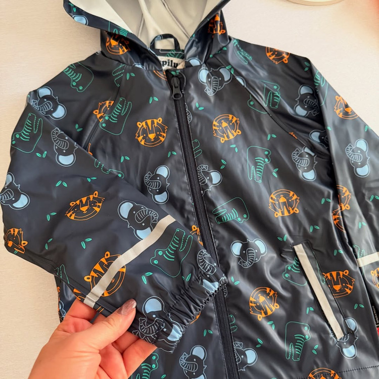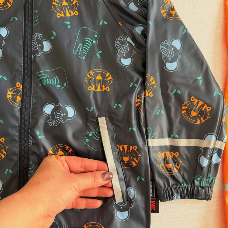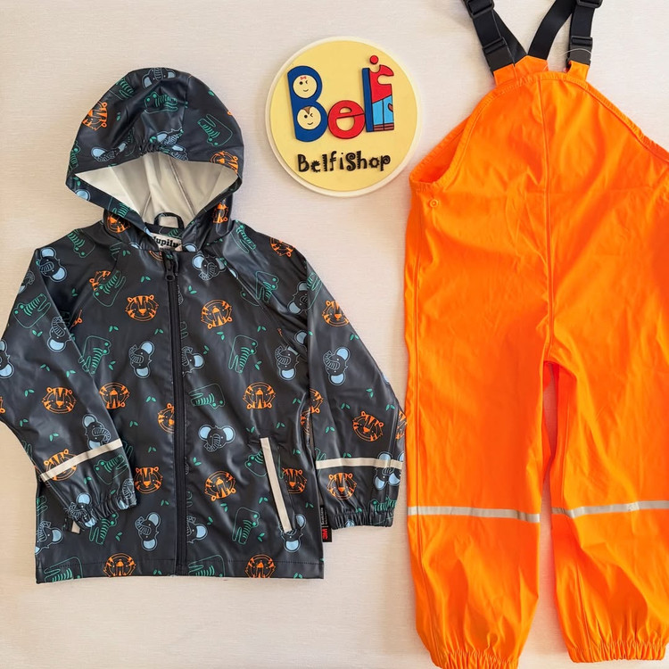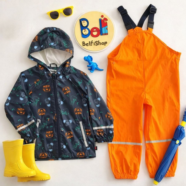ست بارونی و شلوار ضد آب جنس رویه کاملا ضد آب و بادگیر کلاهدار، دارای نوارهای شبنما، زیپ دارای محافظ چانه، دارای دو جیب در طرفین شلوار پیشبندی، دارای بند قابل تنظیم و بند نگه دارنده چکمه.
