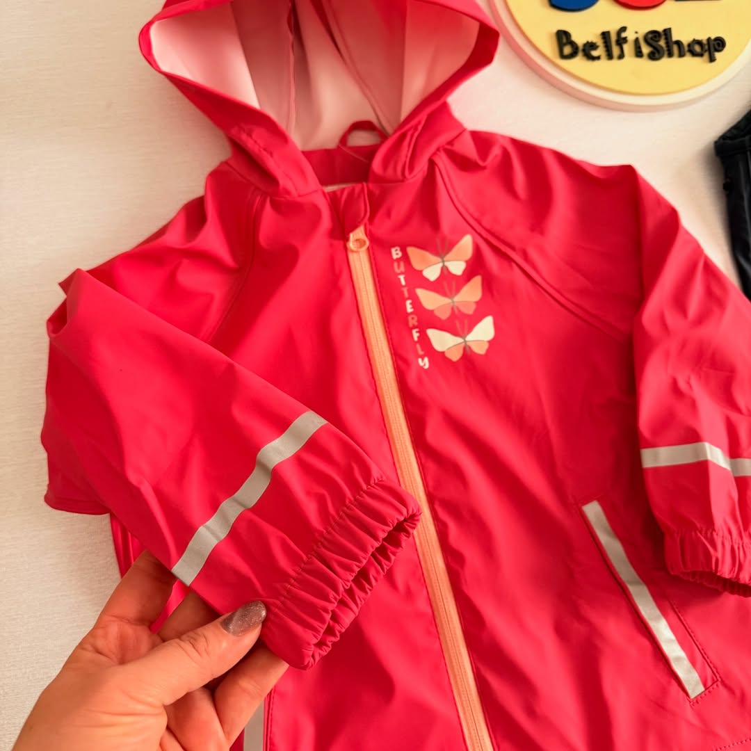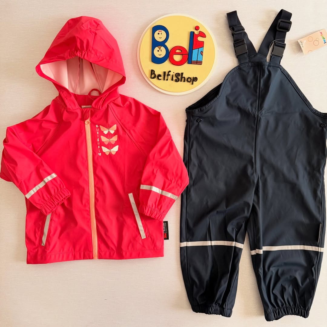 ست بارونی شلوار ضد آب مناسب استفاده روزمره و بازی کودکان در فضای آزاد. جنس رویه کاملا ضد آب و بادگیر کلاهدار، دارای نوارهای شبنما و جیب در طرفین. شلوار پیشبندی با بند قابل تنظیم.