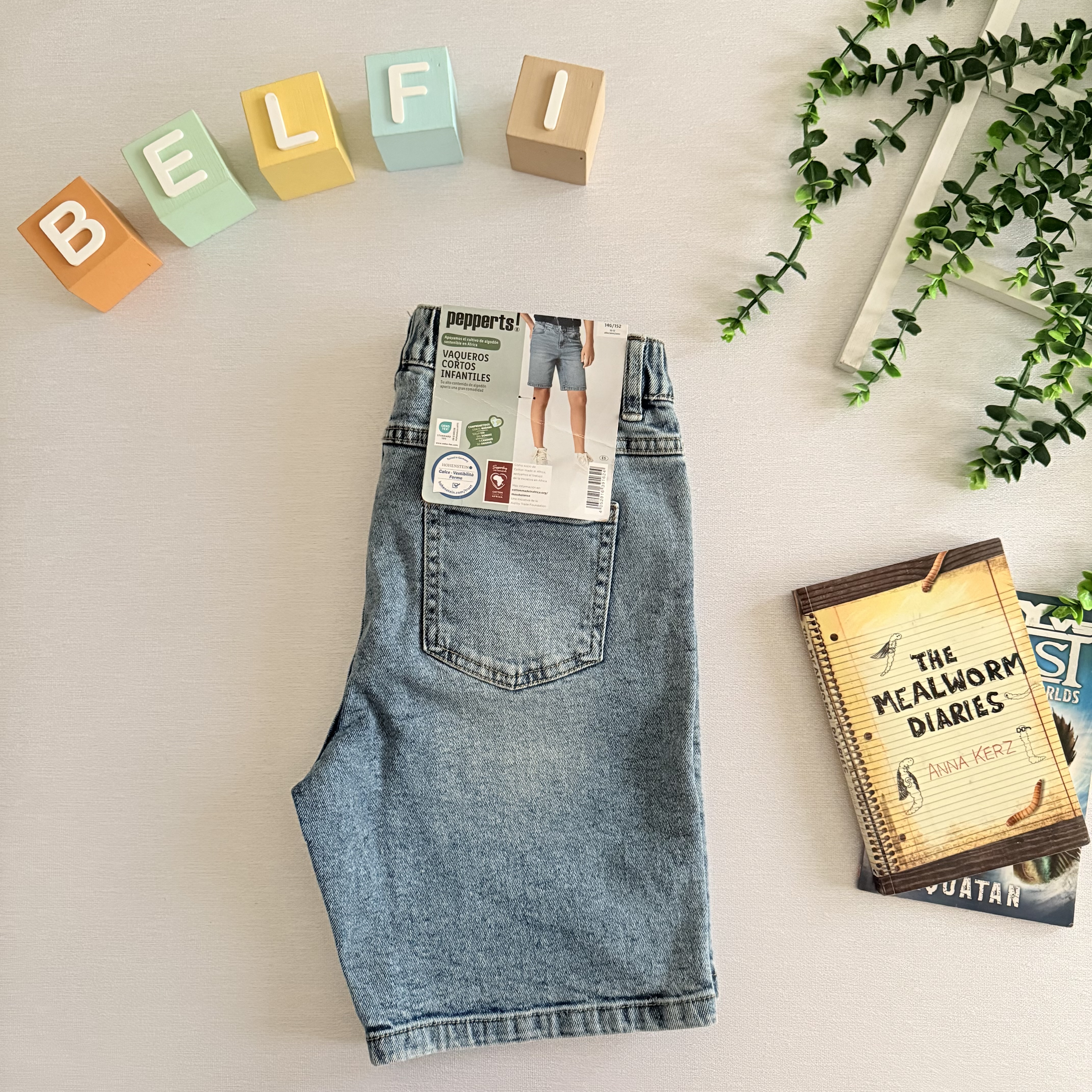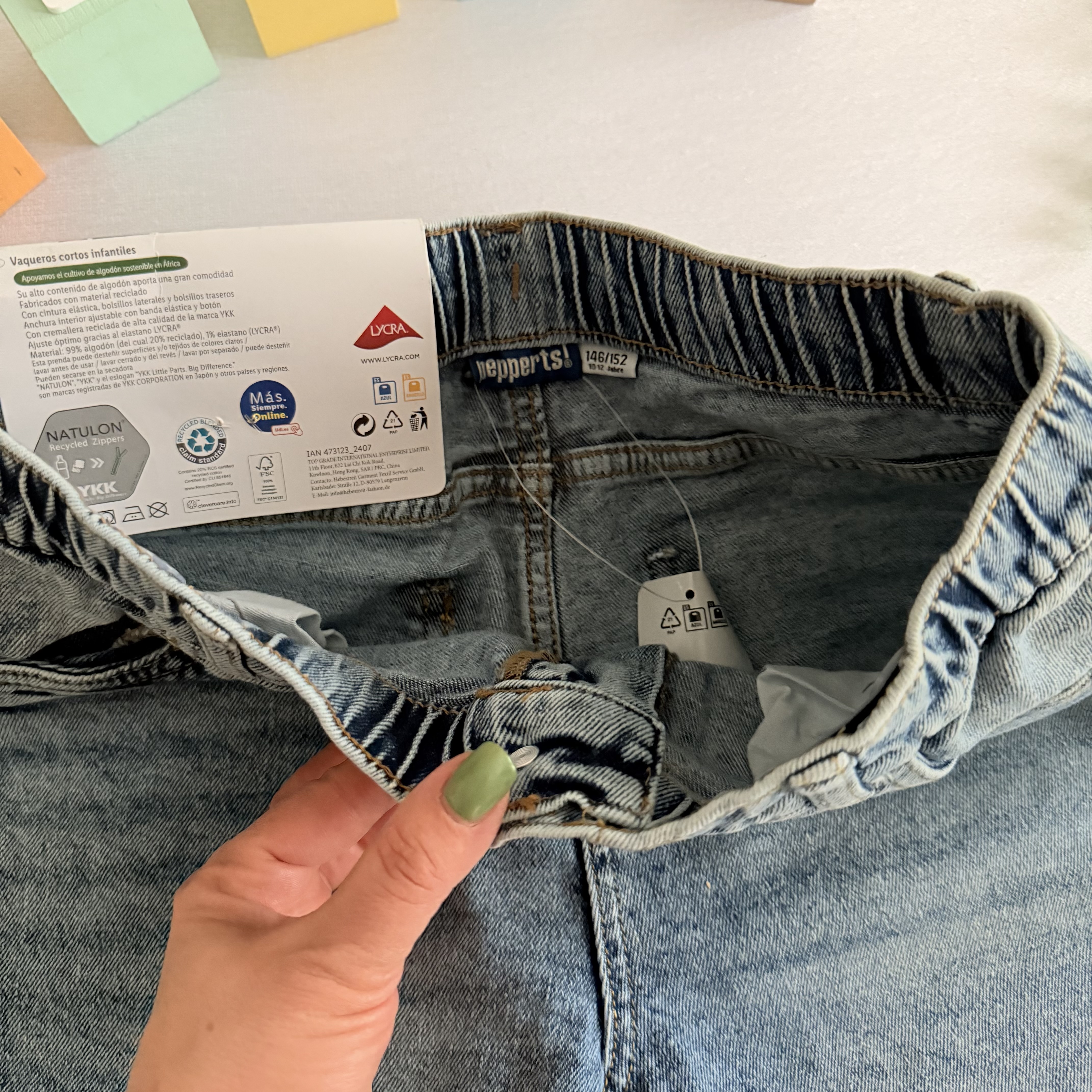 شلوارک جین برند پپرتز آلمان دکمه دار کمر داری کش رگلاژ