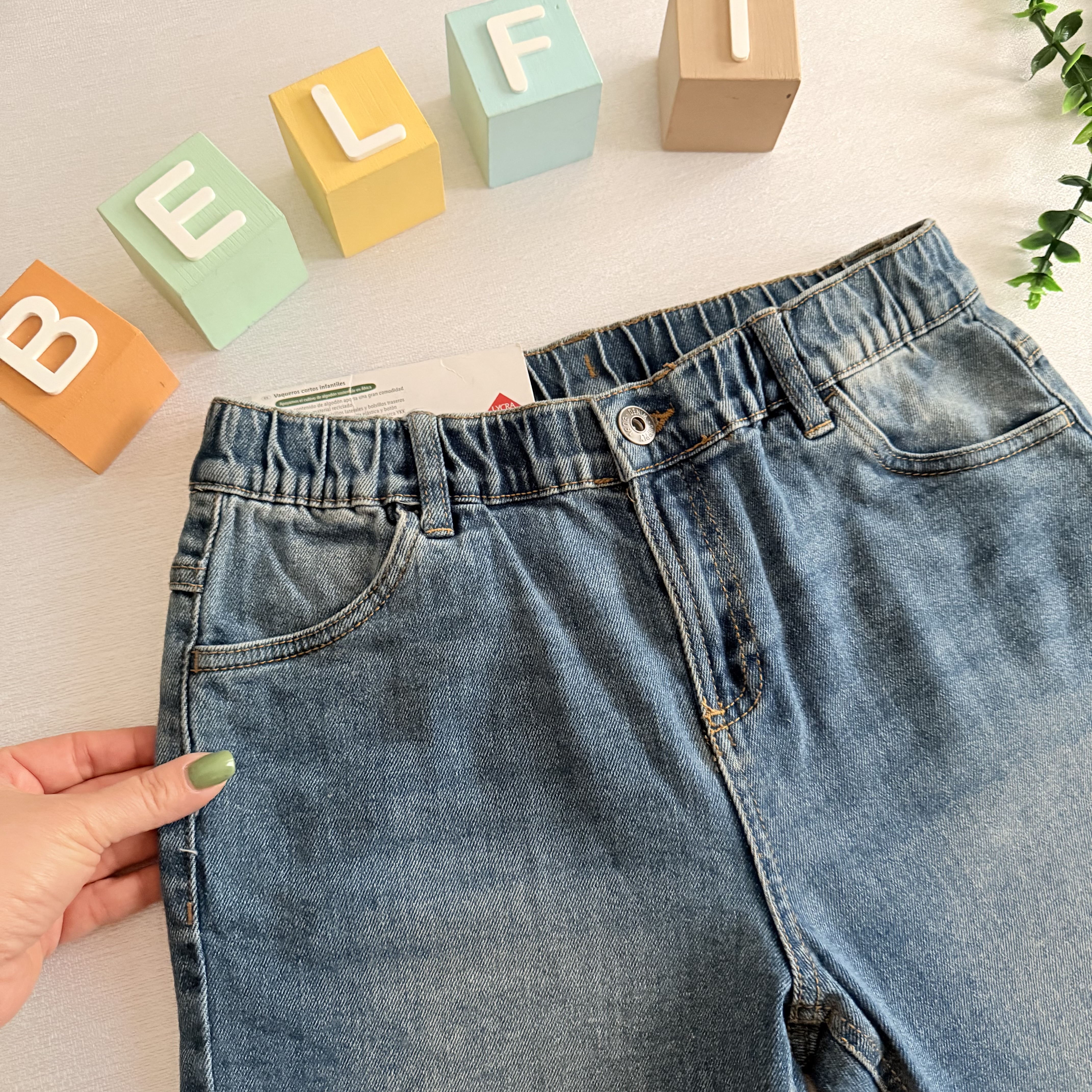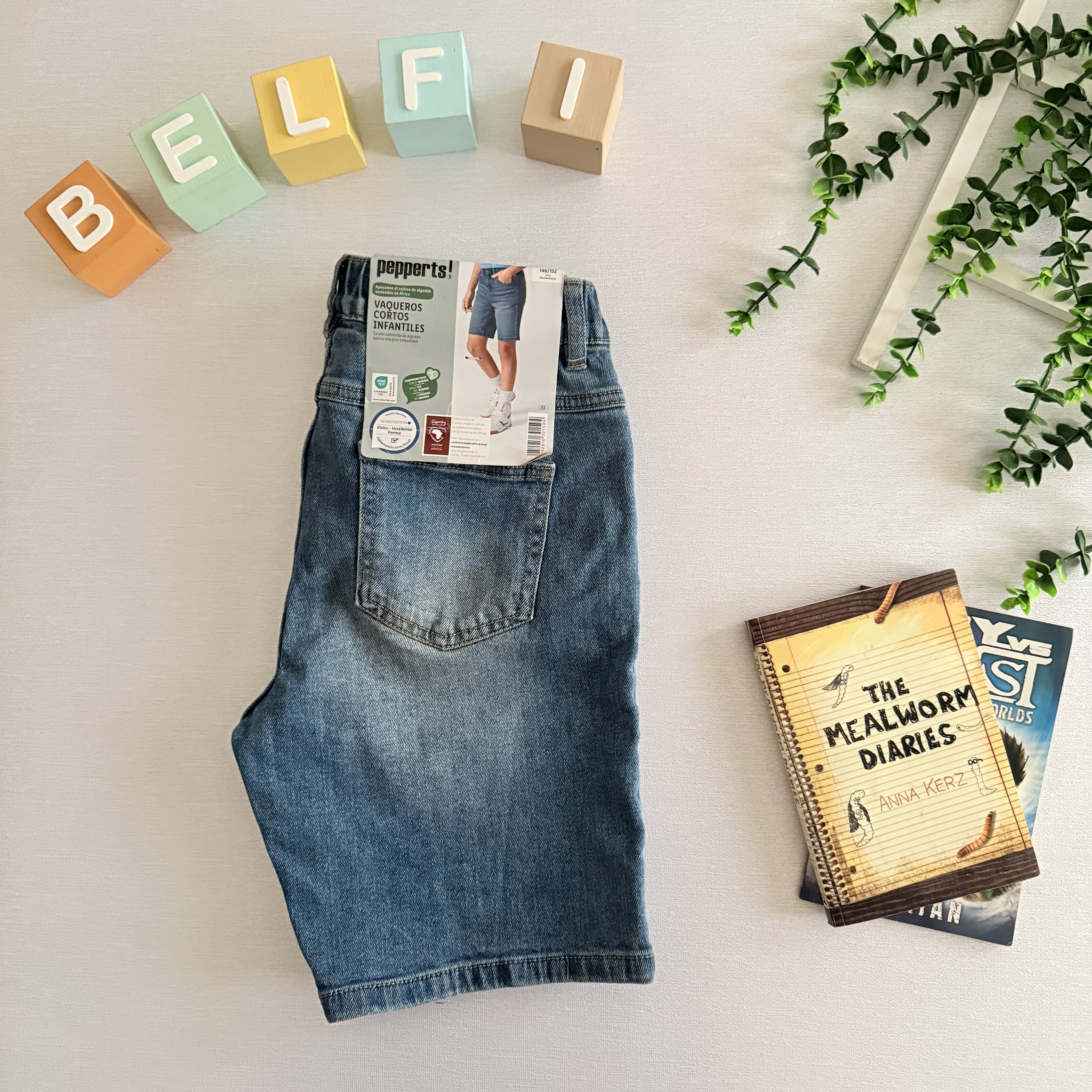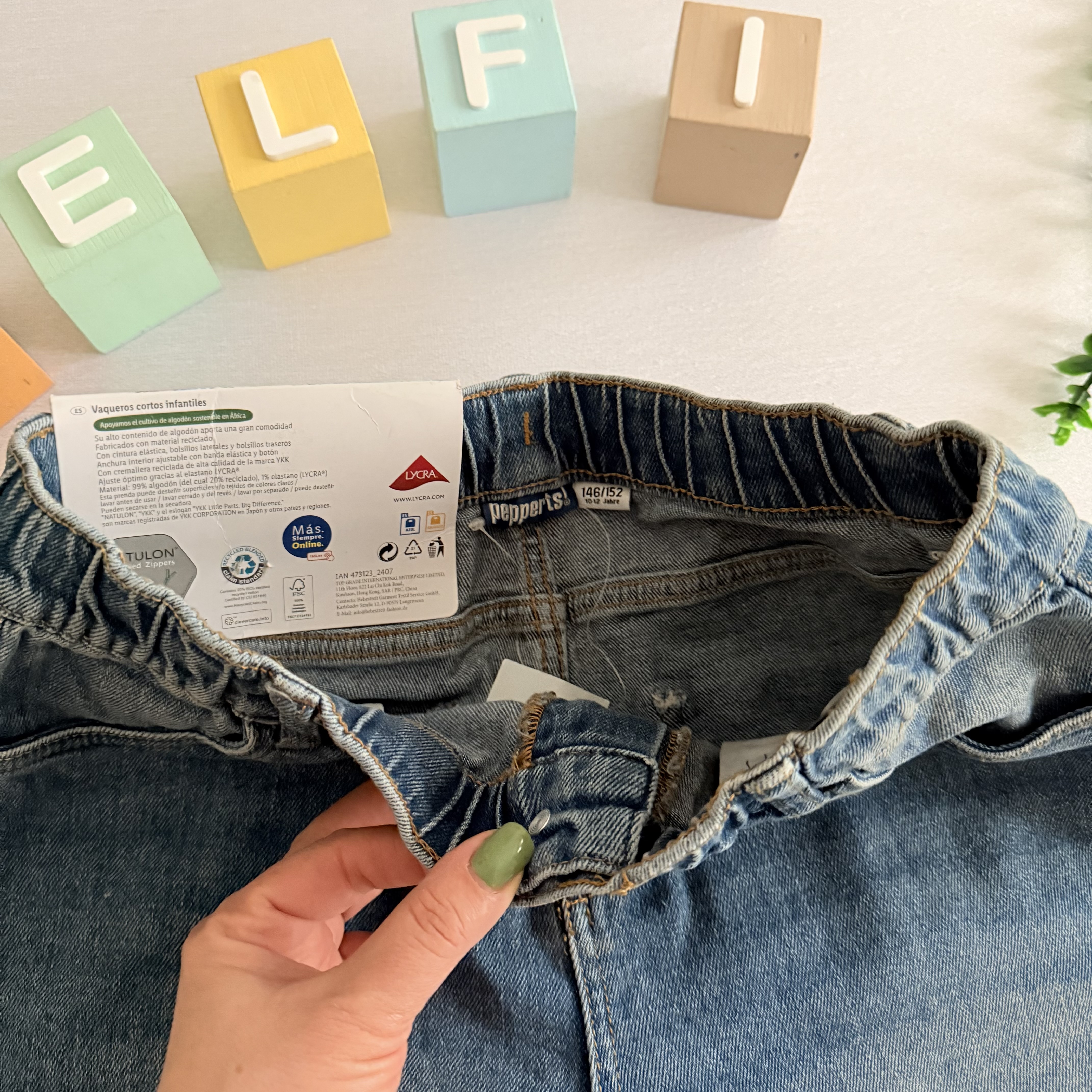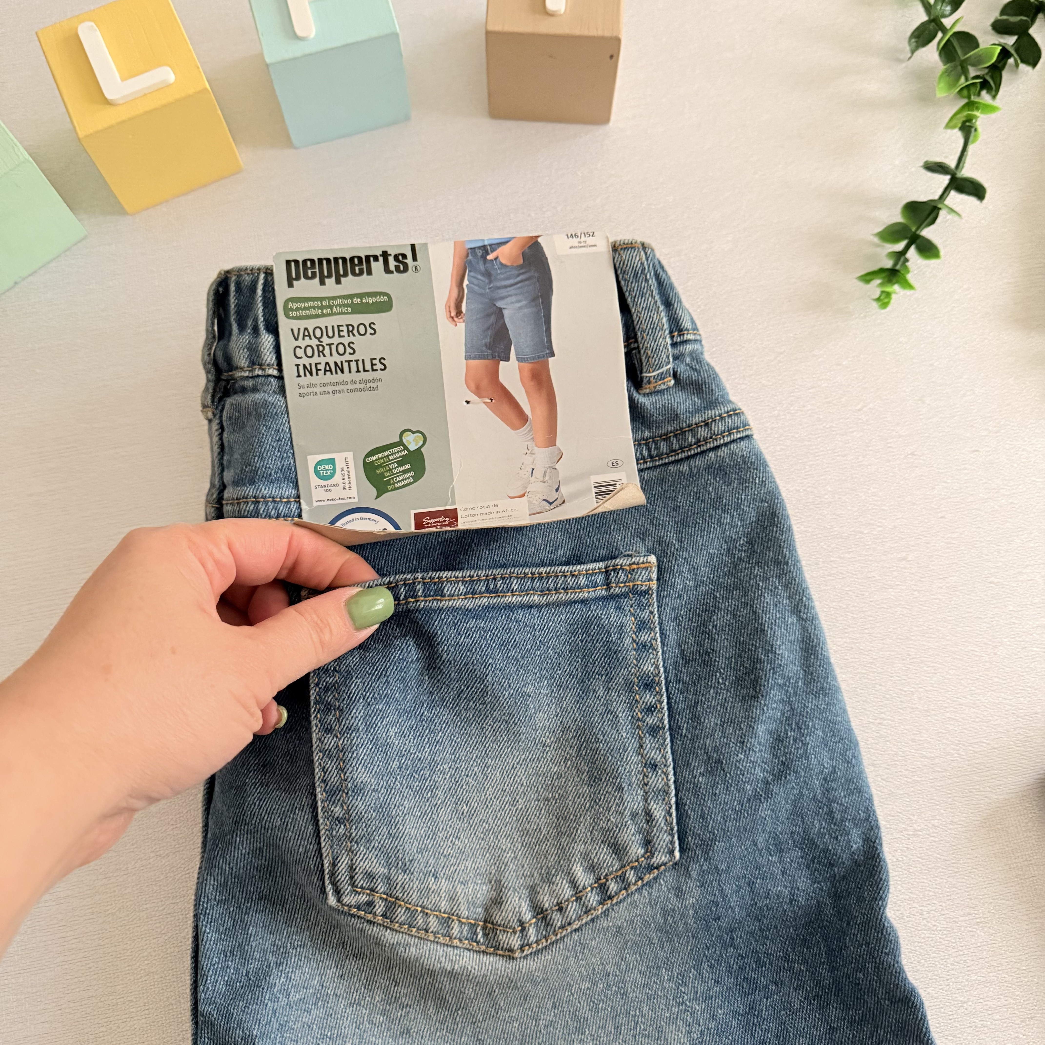 شلوارک جین برند پپرتز آلمان مدب دکمه دار دارای کش رگلاژ کمر ، دارای جیب در طرفبن و پشت