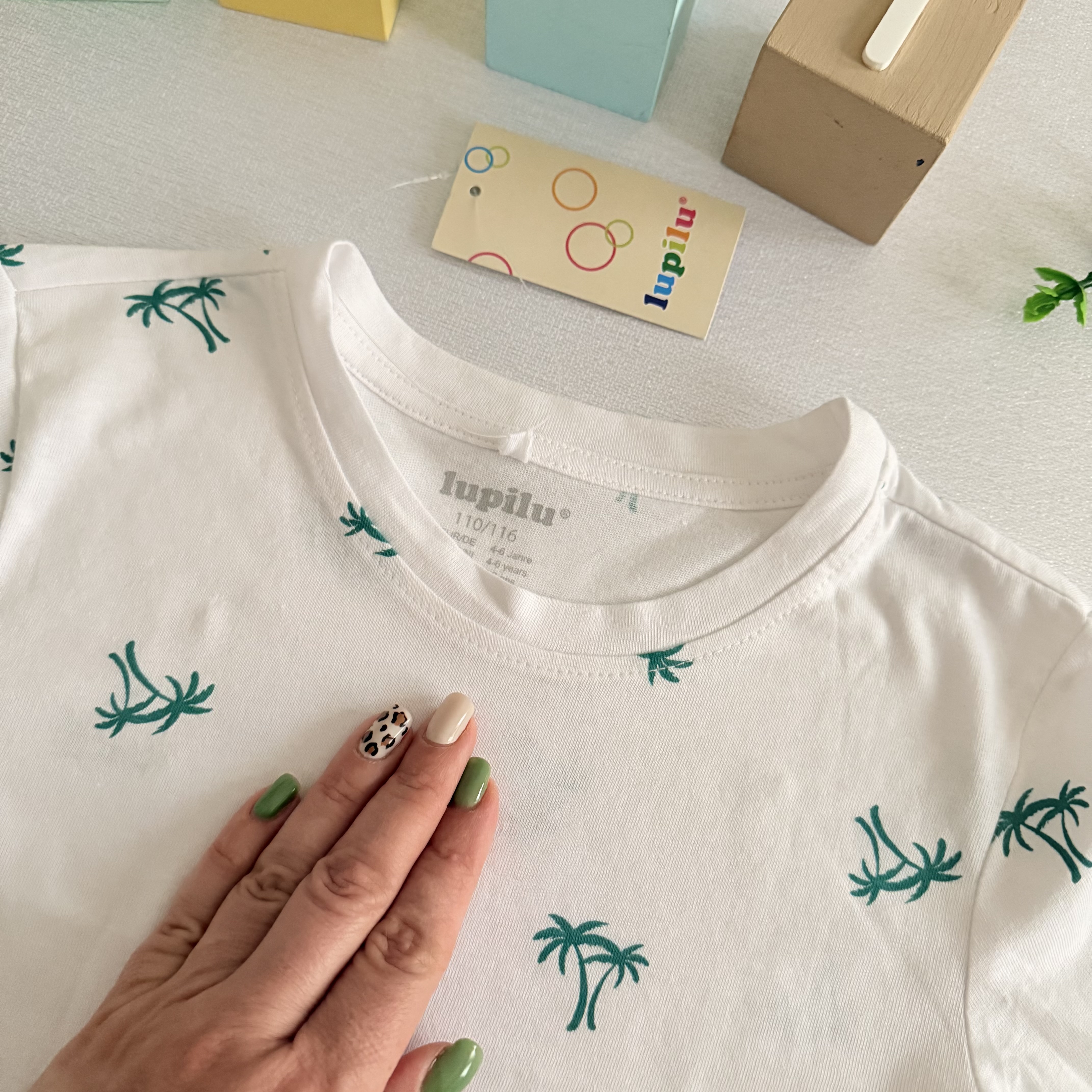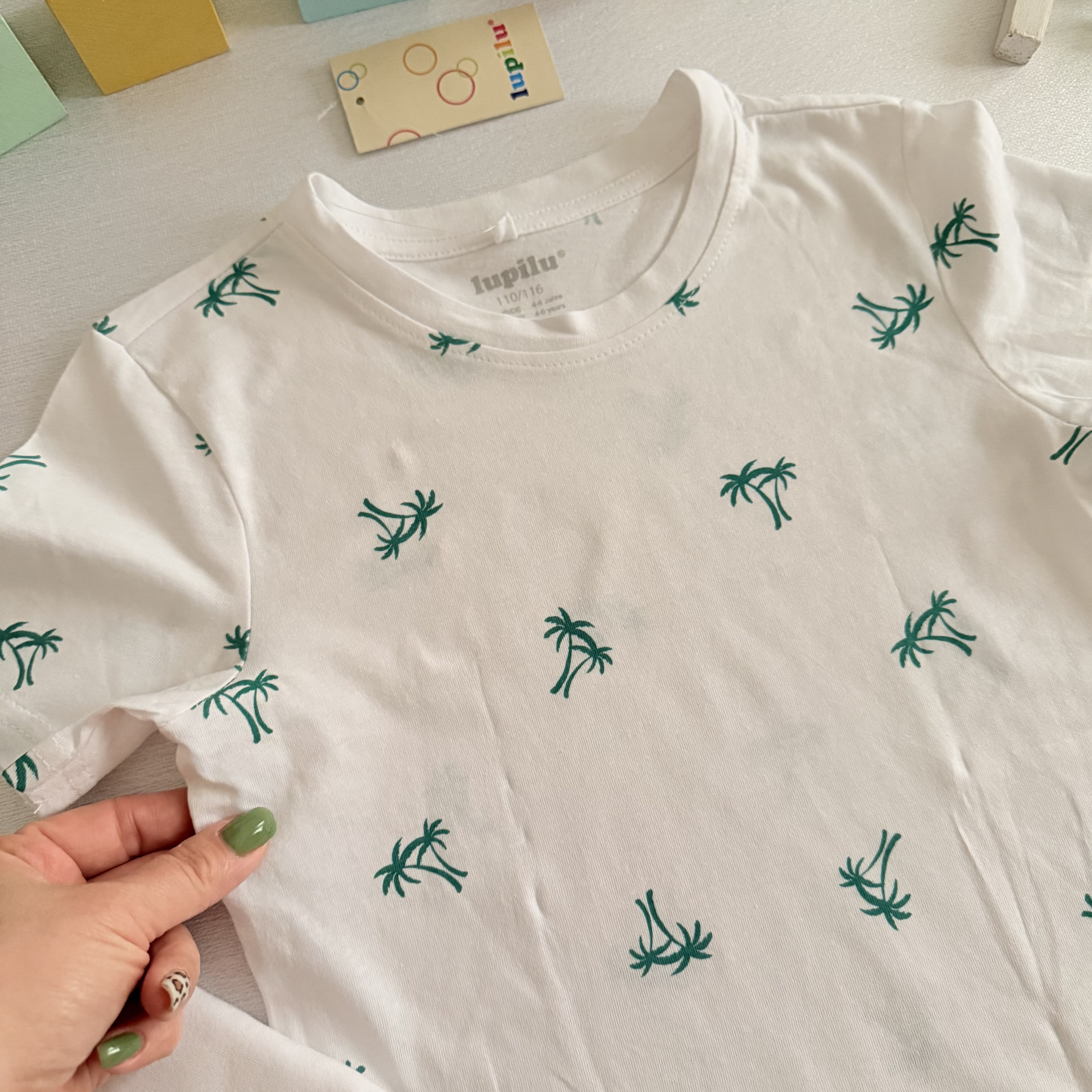 تیشرت تمام نخ برند لوپیلو آلمان طرح نخل تهیه شده از الیاف ارگانیک بسیار لطیف سازگار با پوست کودکان