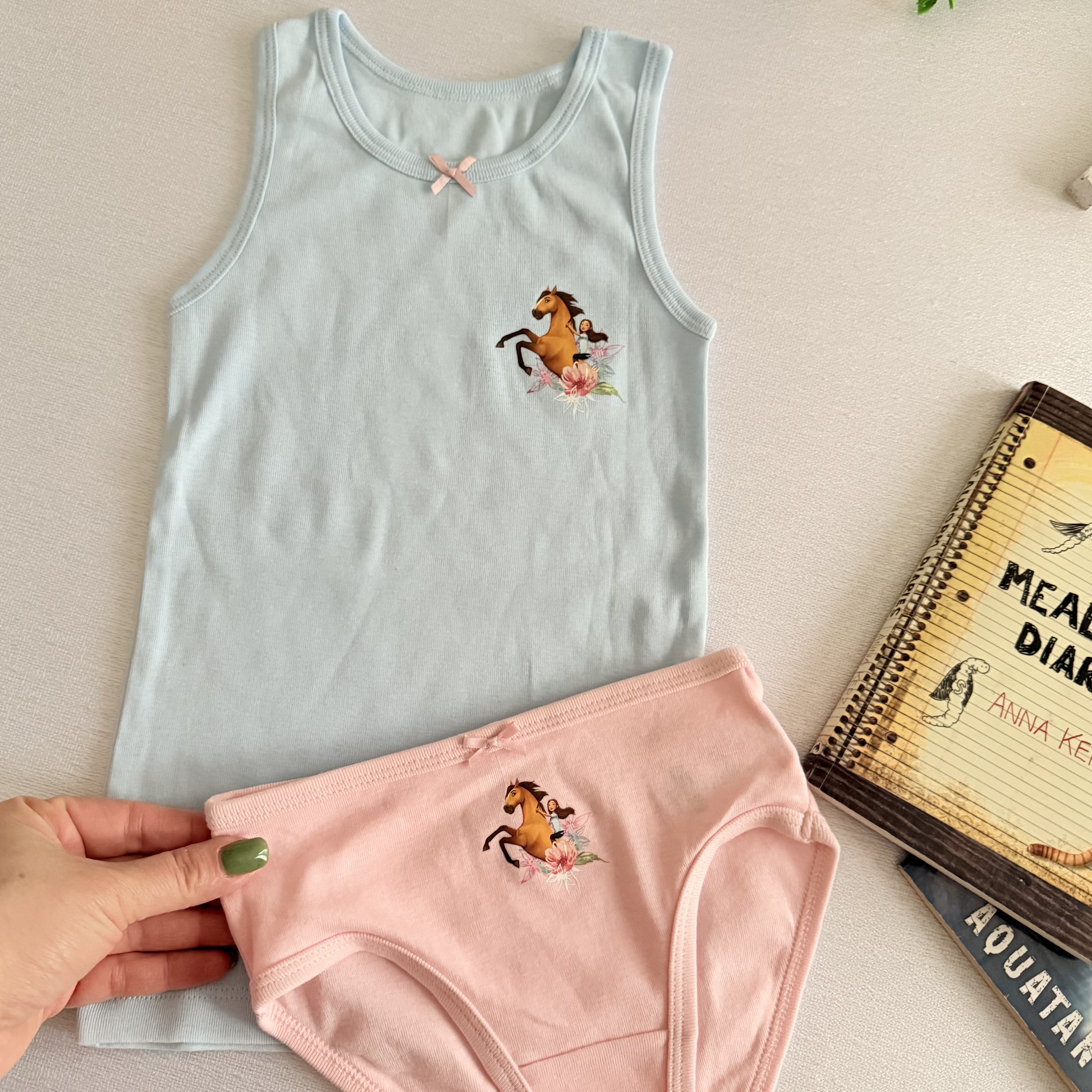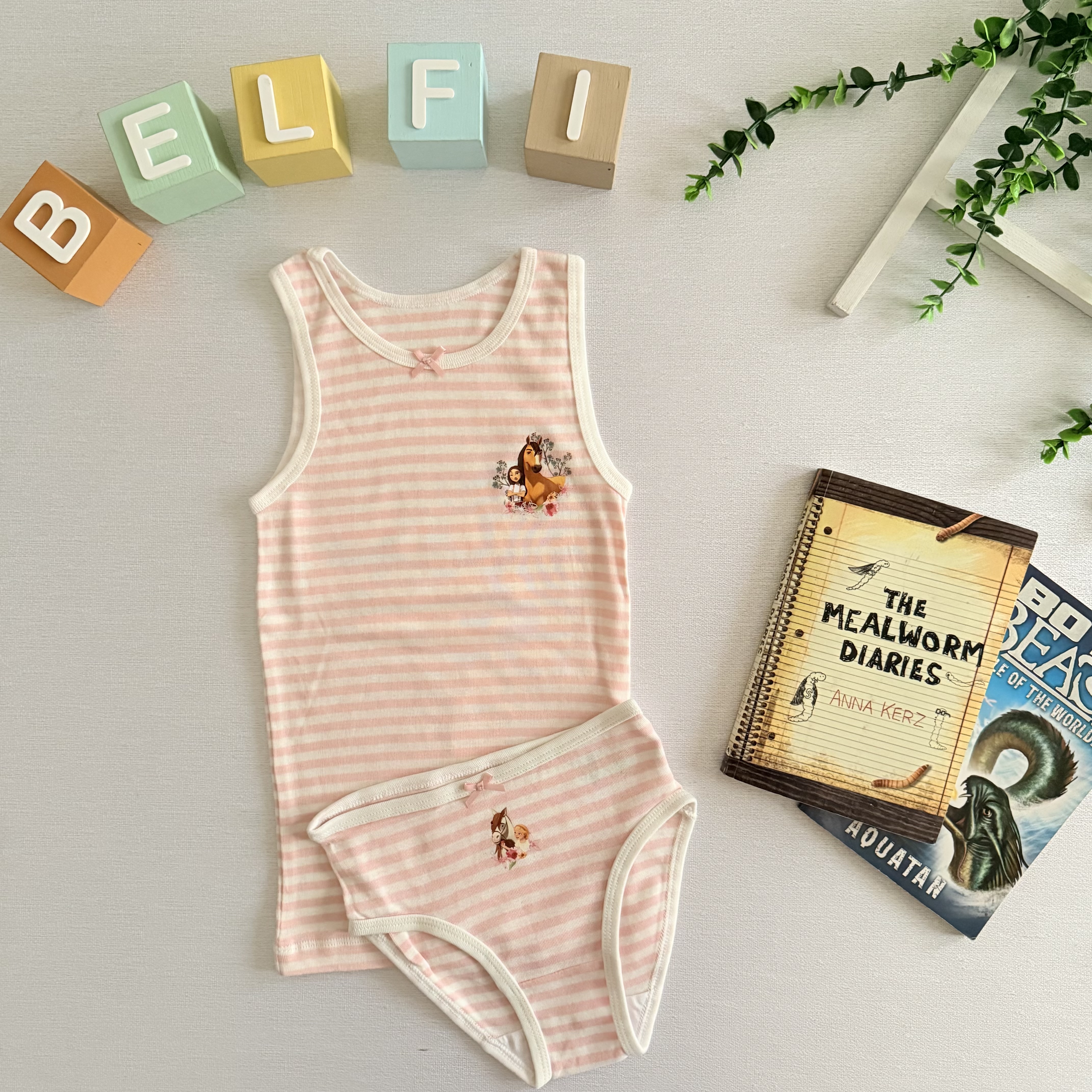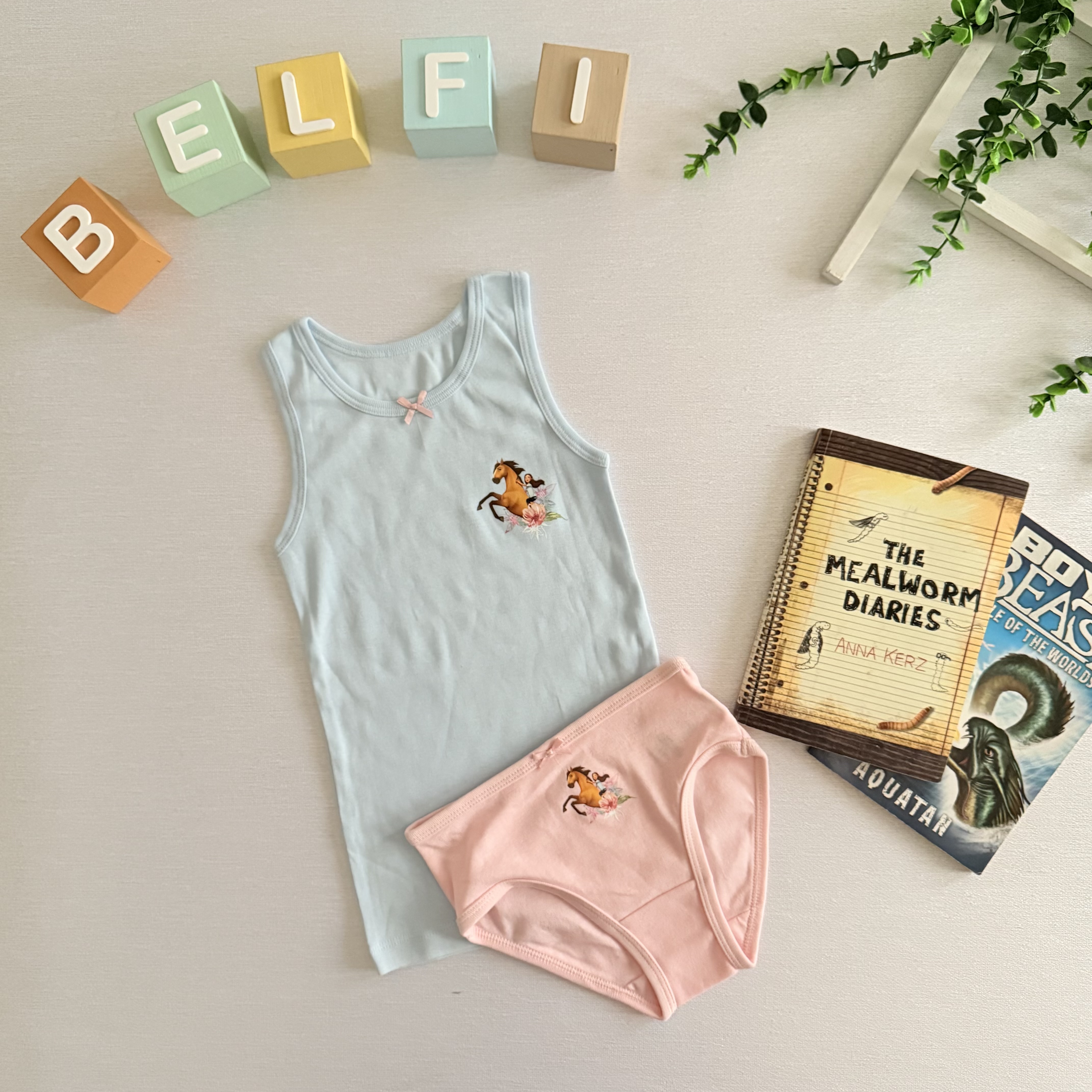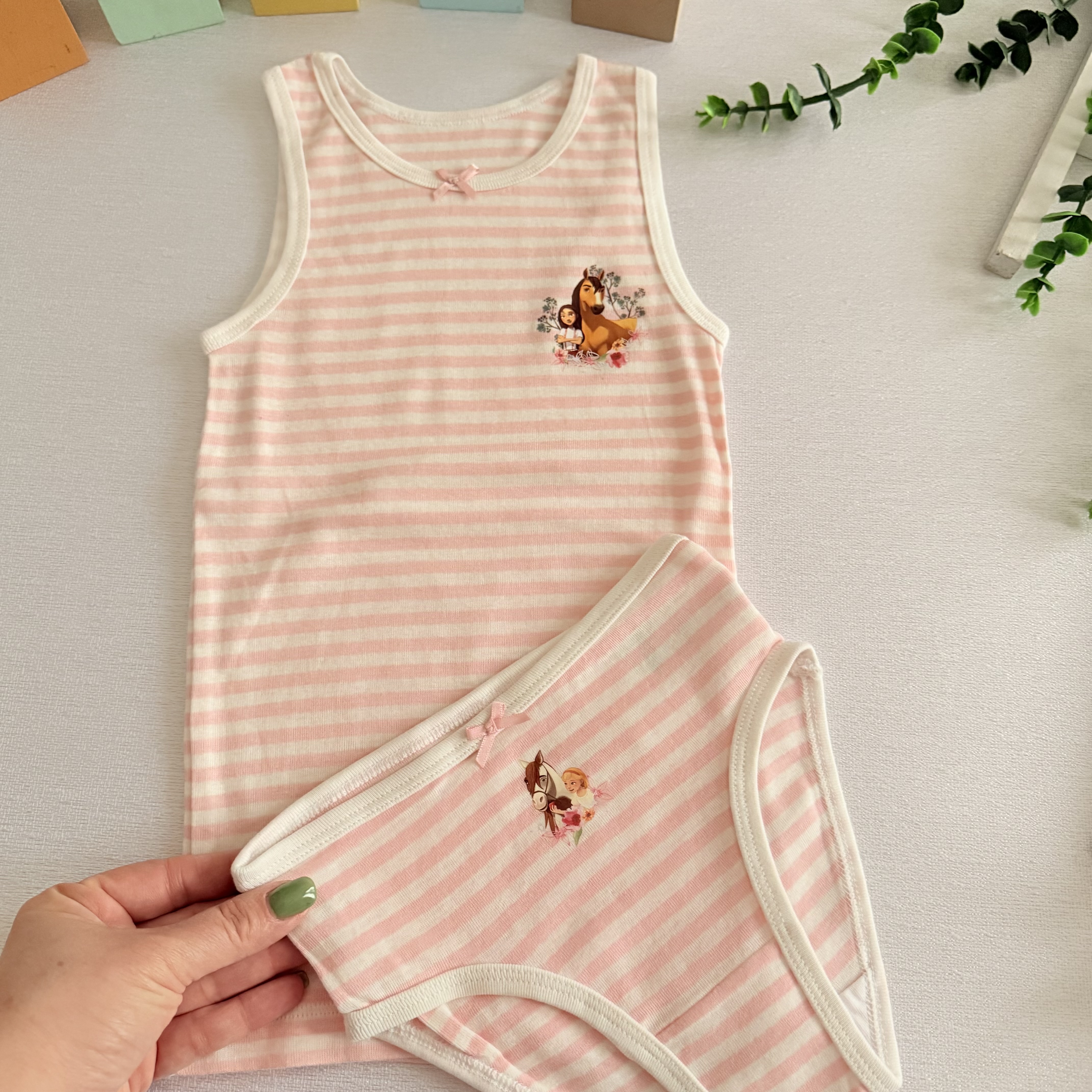 ست رکابی وشورت دخترانه تمام نخ بسیار لطیف تهیه شده از الیاف ارگانیک سازگار با پوست حساس کودکان دارای کشسانی