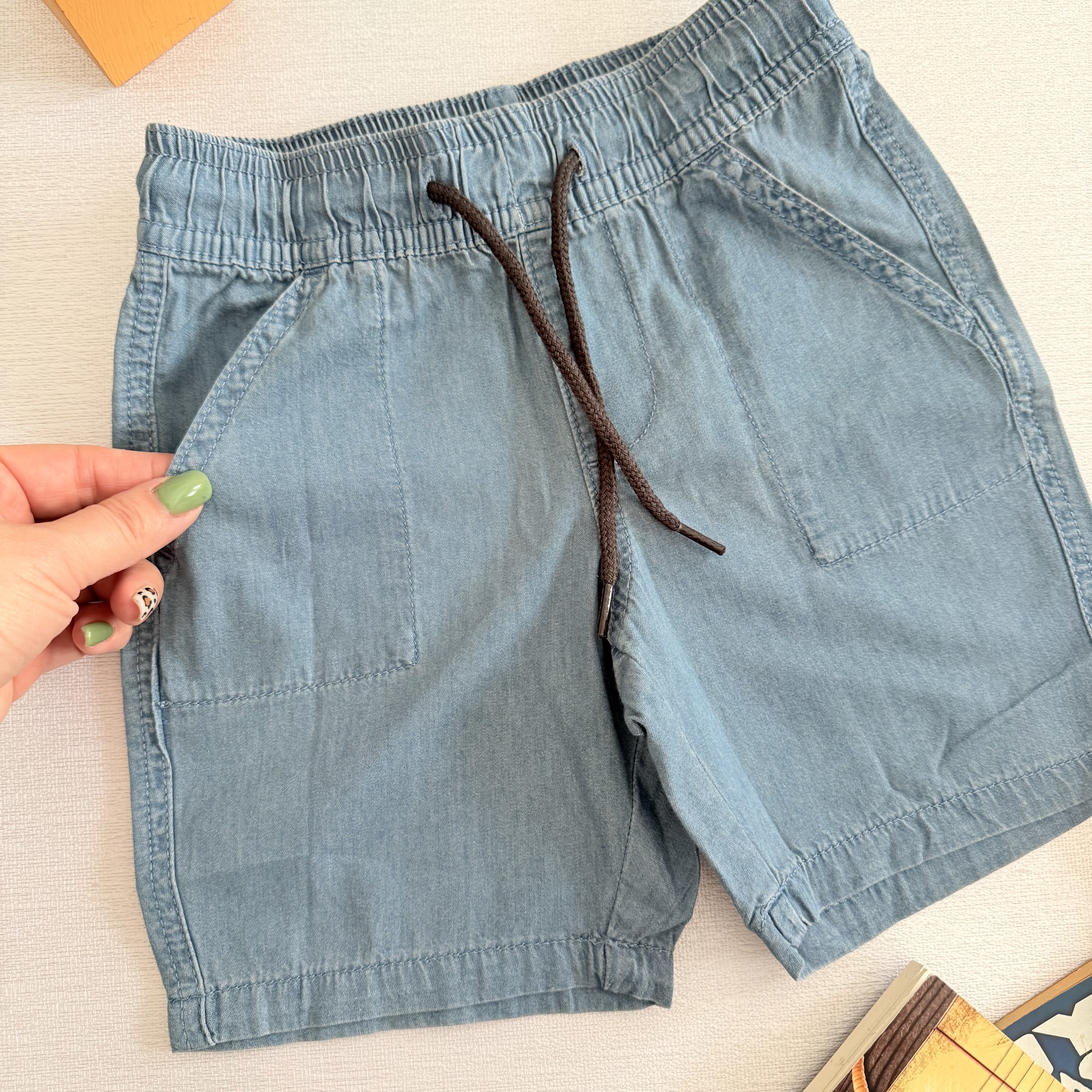 پک دو عددی شلوارک کتان و جین کاغذی بسیار نرم سبک و لطیف کمر کش دارای بند تنظیم و جیب در طرفین کیفیت عالی مناسب استفاده روزمره و مهد در تابستان