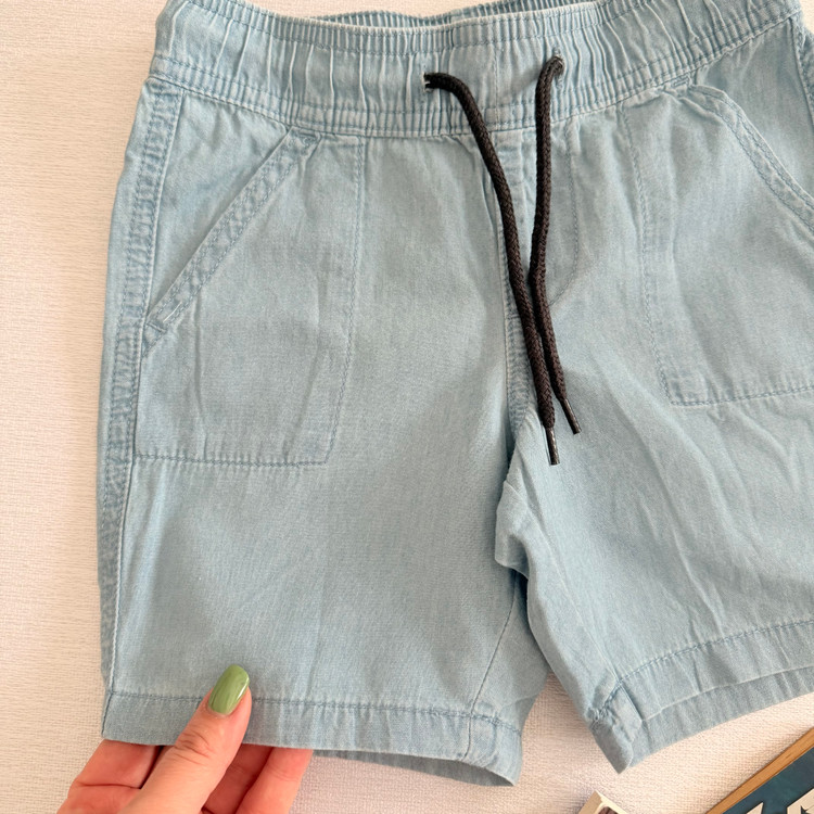 پک دو عددی شلوارک کتان و جین کاغذی برند لوپیلو بسیار سبک نرم لطیف وبا کیفیت کمر کش دارای بند تنظیم و جیب در طرفین مناسب استفاده روزمره ، بیرون ومهد در بهار و تابستان