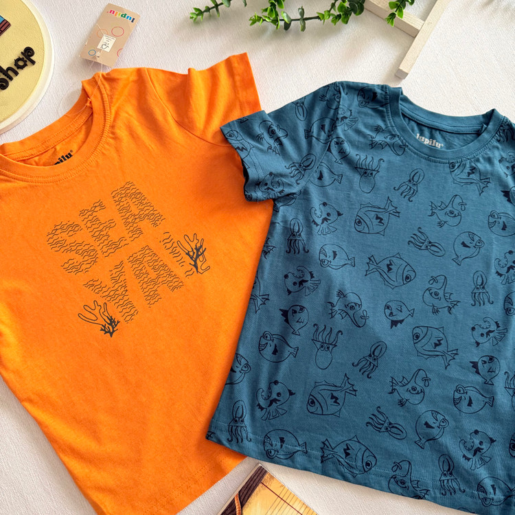 پک دو تایی تیشرت تمام تخ برند لوپیلو بسیار نرم و لطیف دارای استاندارد اتحادیه اروپا مناسب استفاده روزمره ، بیرون و مهد