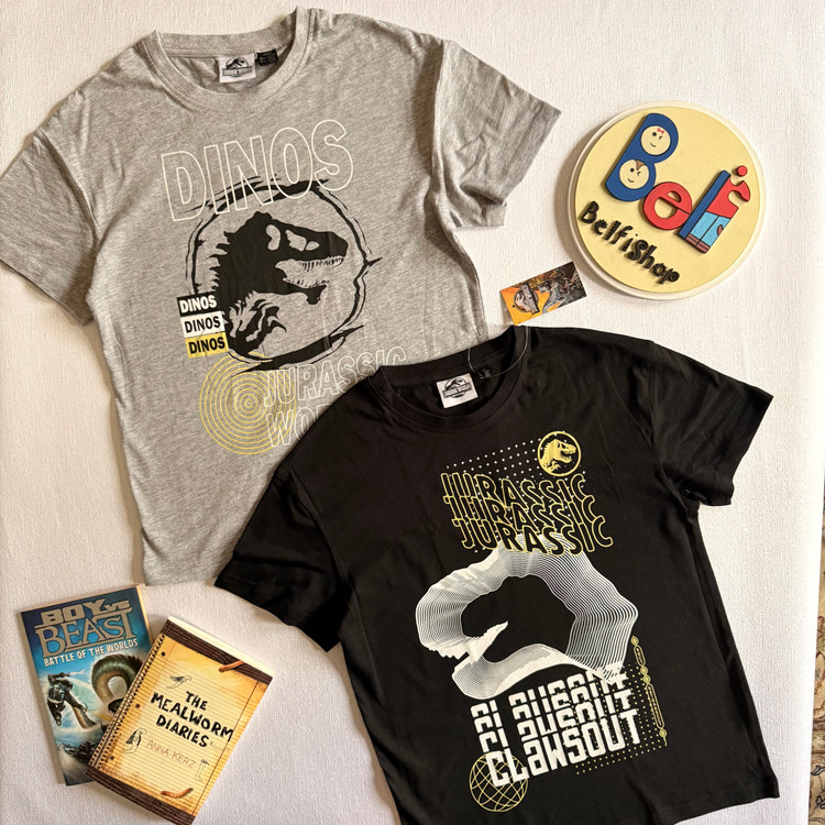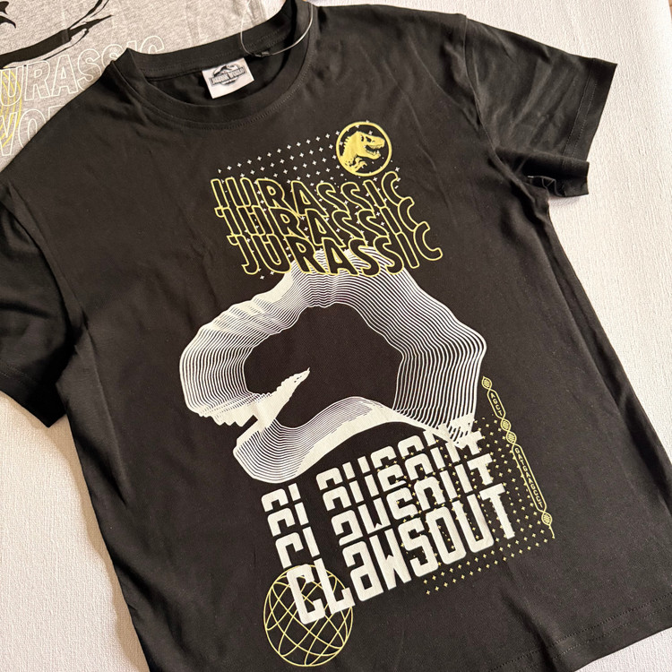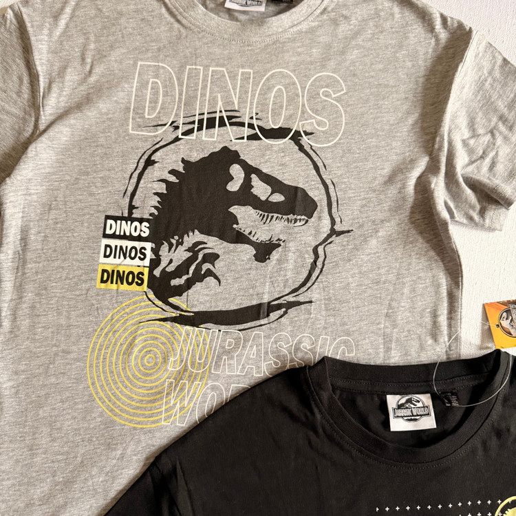 پک دو عددی تیشرت تمام نخ طرح دایناسوری طوسی و مشکی برند پپرتز آلمان بسیار لطیف و خنک مناسب استفاده روزمره