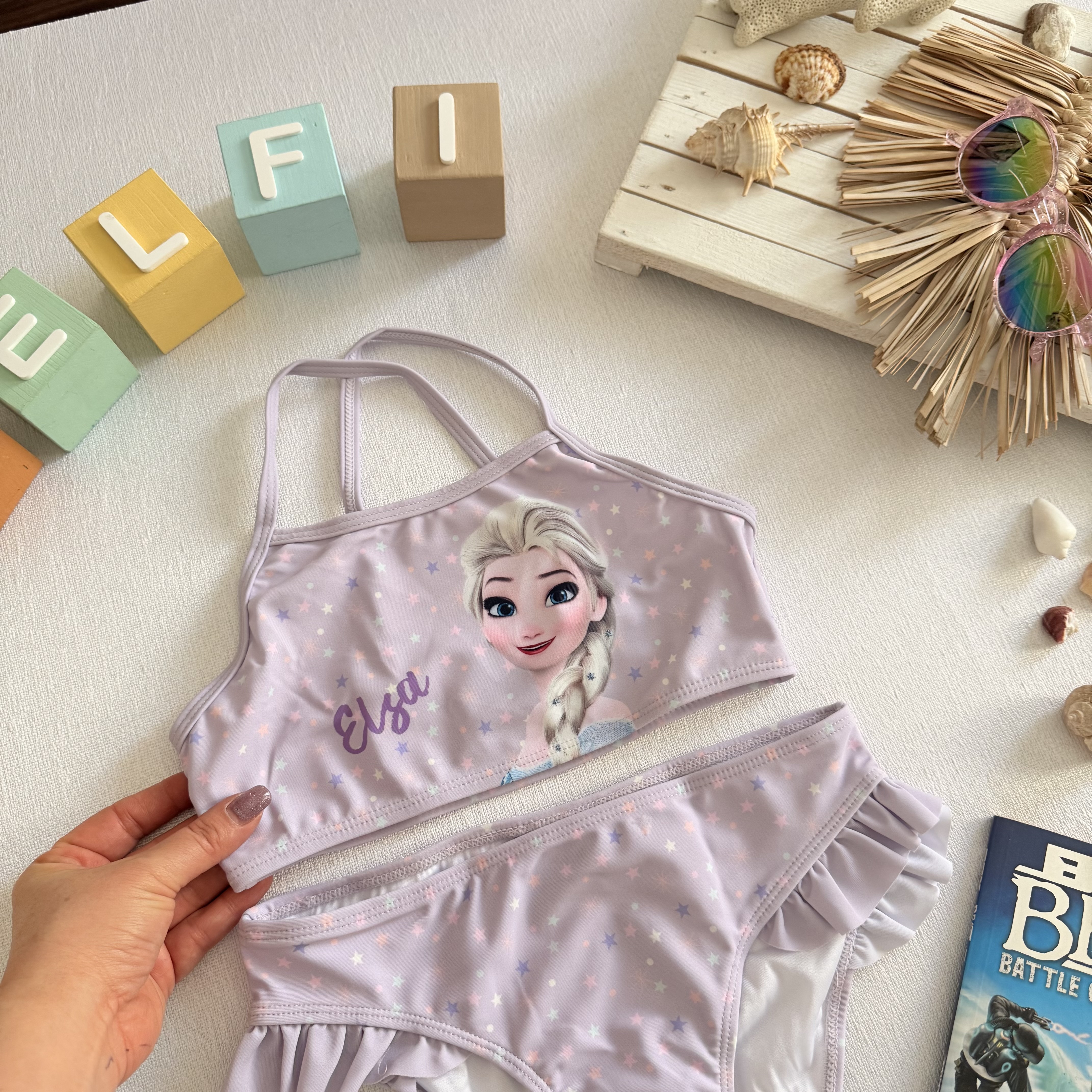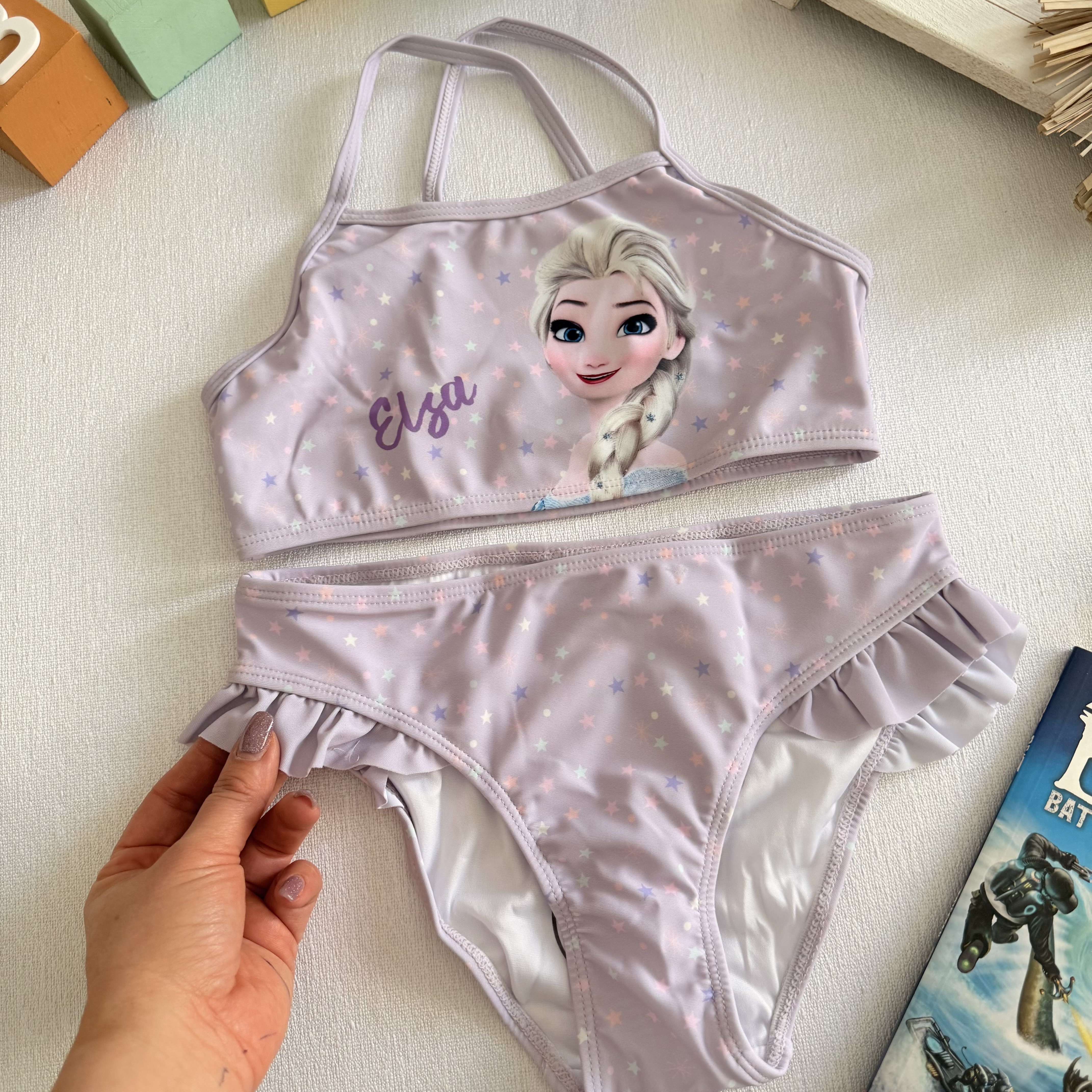 مایو دو تکه السا بسیار با کیفیت ضد اشعه و ضد کلر محصول آلمان مناسب استخر و دریا سایز ۶ تا ۸ سال مناسب قد ۱۲۲/۱۲۸ عرض سینه : ۲۷ دور کمر شورت : ۵۶ کمر تا فاق : ۲۱
