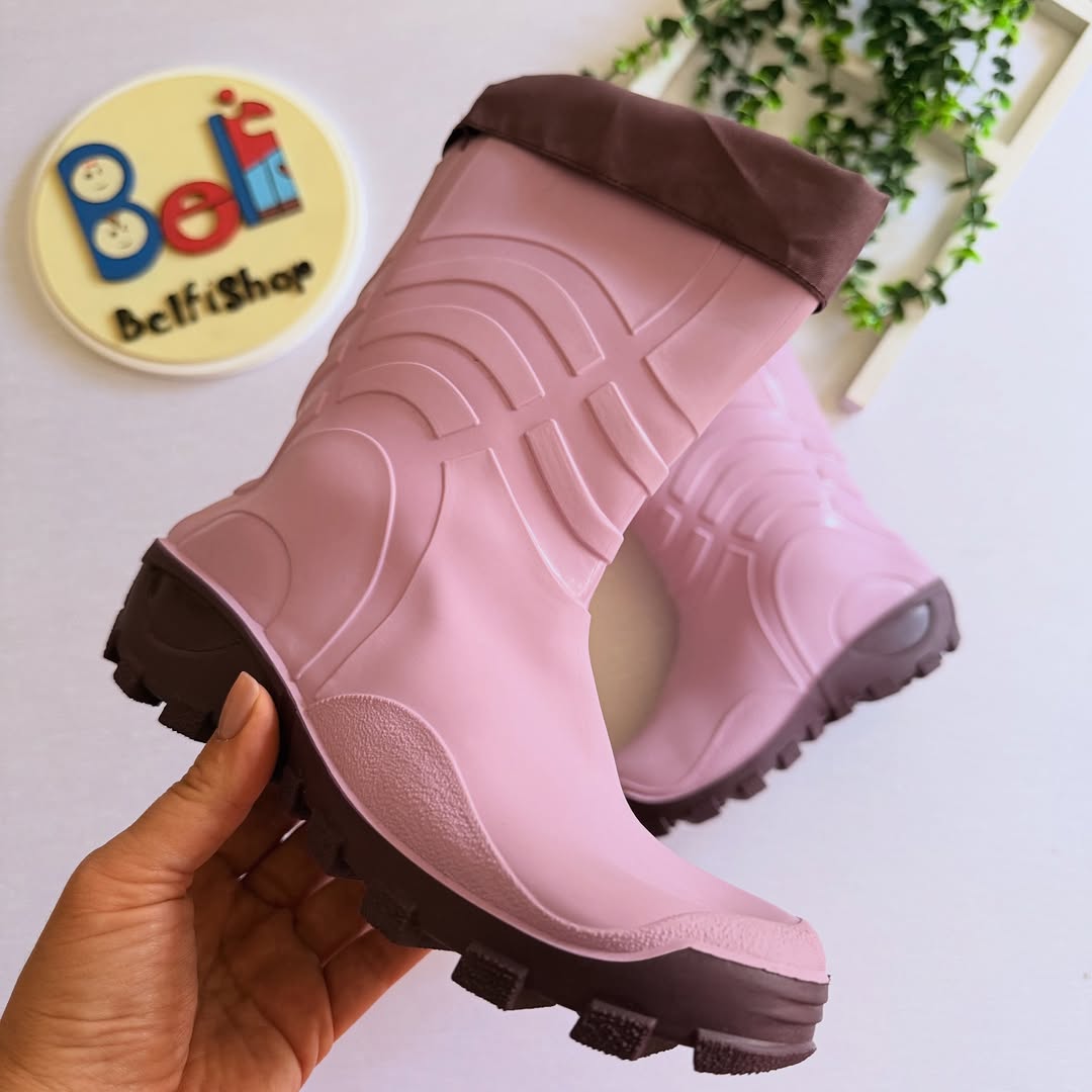 این چکمه های ضد آب از جنس پلاستیک فشرده و مناسب برای روزهای بارانی پاییز هستند. مدلها در سایزها و نوعهای مختلف موجودند، از جمله مدلهای خز دار و بدون خز.