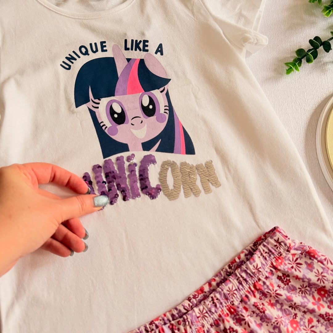 ست خوشگل یونیکورن تیشرت پولک برگردون دو حالته برند لوپیلو آلمان سایز ۶ سال