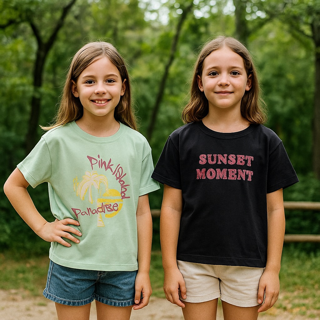 تیشرت دخترانه کراپ بسته دو تایی مدل مینی موس و اسکای